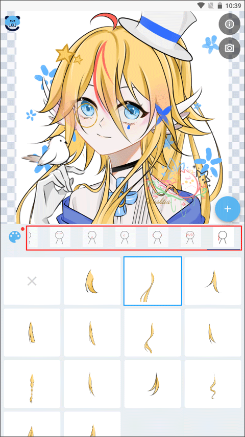 2.进入到画像编辑界面之后,就可以从眼睛、嘴巴、手、头发、衣服等各个地方进行二次创作;