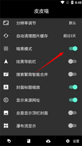随后即可看到“暗黑模式”开关,点击即可立即启用,享受更舒适的夜间阅读体验。