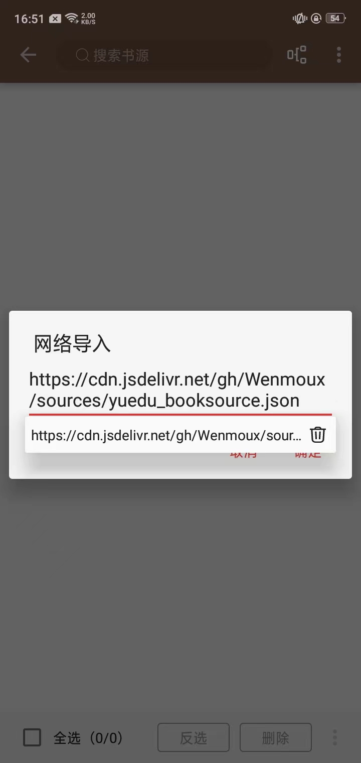 3、将书源链接粘贴复制到软件界面中,点击确定;