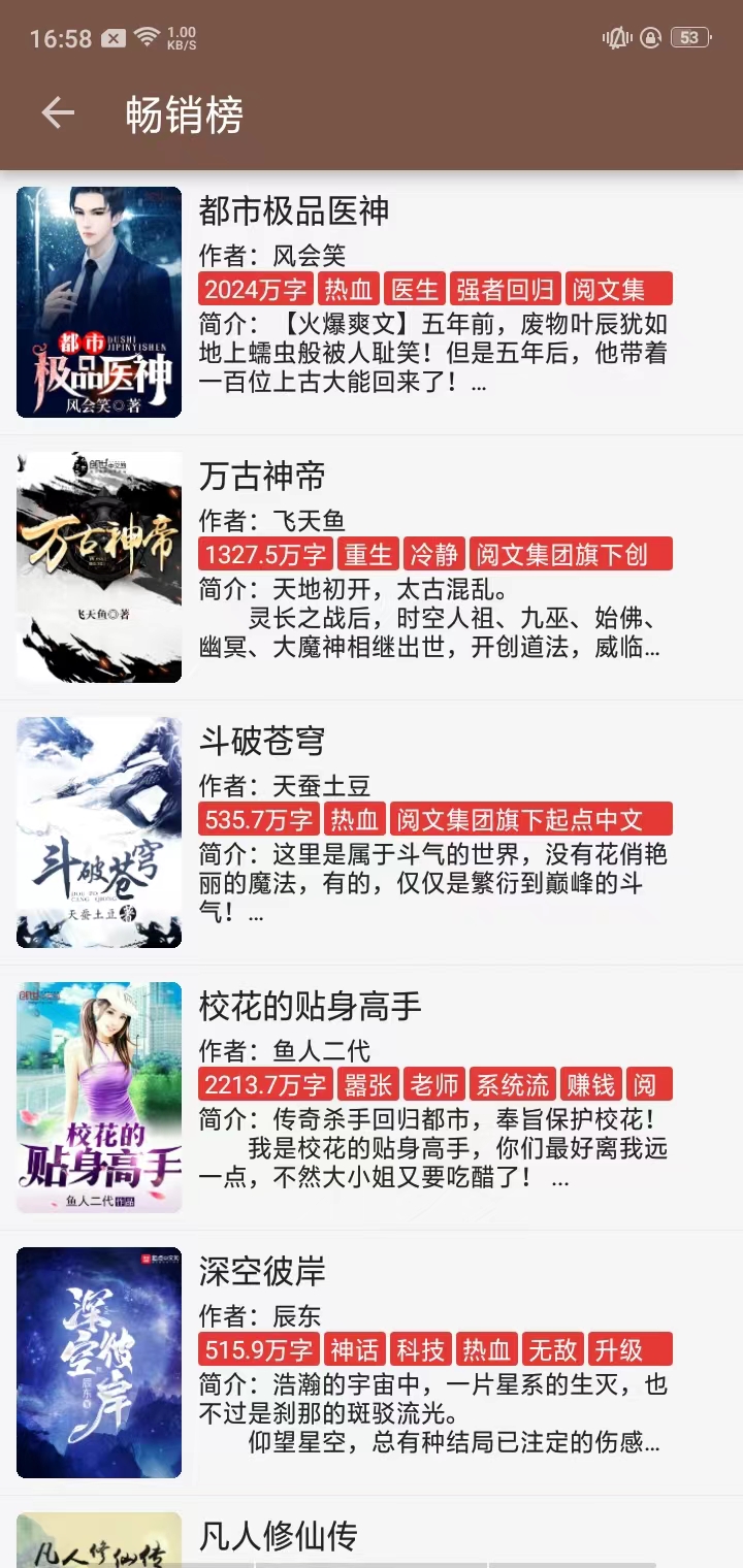 6、随便点开一个类目,就可以查看这个类目下的小说;