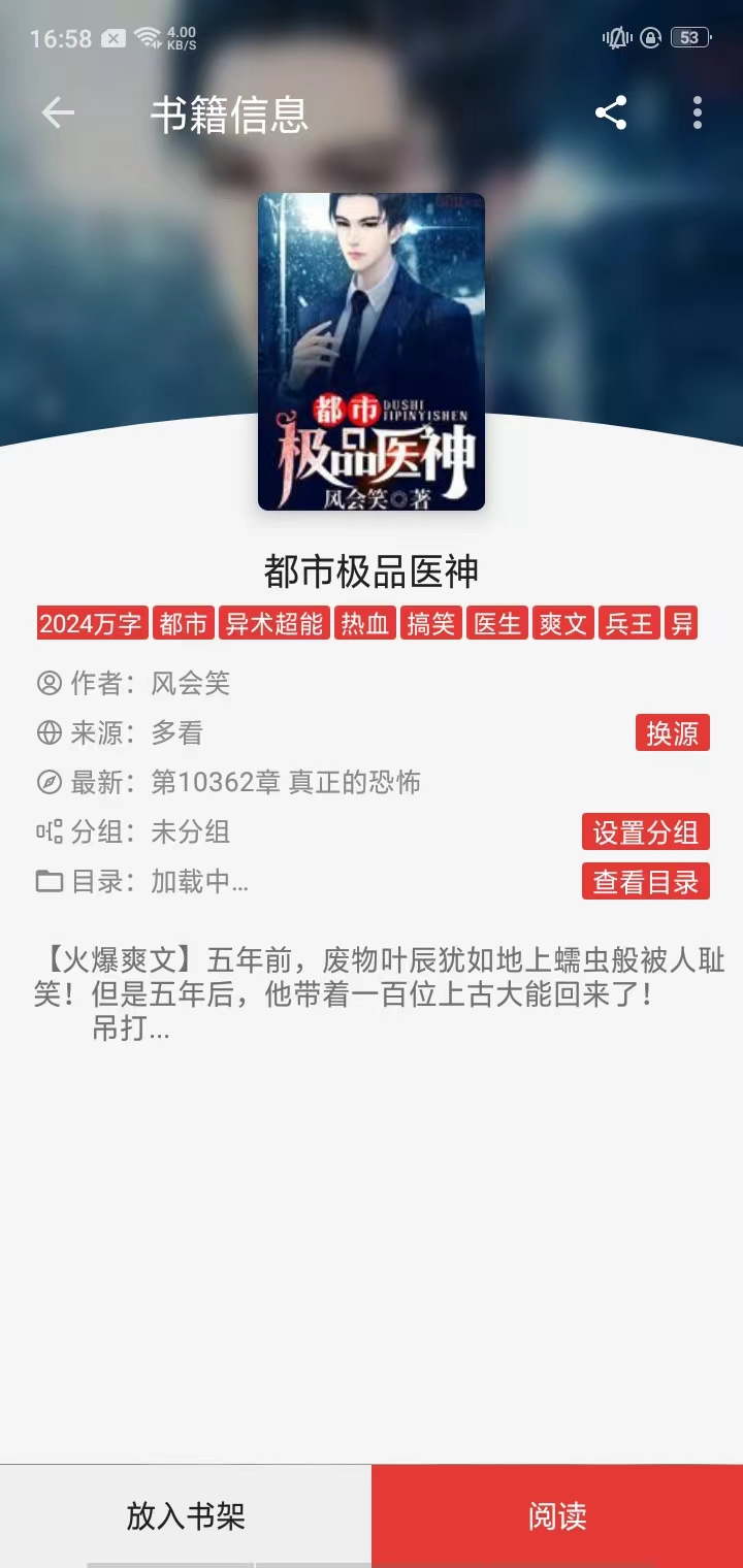 7、我们可以点开一本小说,可以直接阅读以及放入书架。