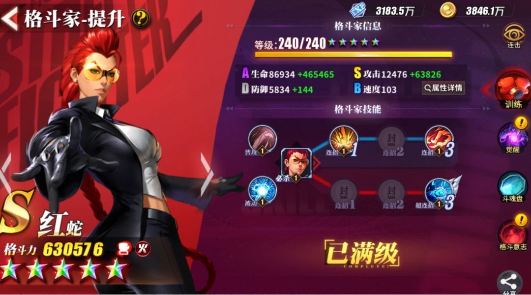 红蛇作为群攻高伤的输出型格斗家,具有不错的暴击能力,所以提升伤害相关属性可以将其输出能力最大化。因为红蛇攻击基数较高,暴击效果获得的收益要远远大于攻击伤害本身,非常有必要进行提升。