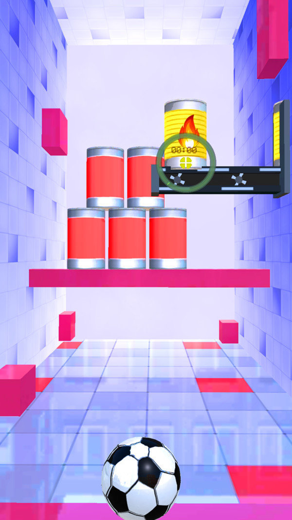 2、摇一摇控制小球进行瞄准,然后击中罐头,只要击倒或者爆炸都可以。