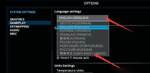 点击第一个选项框,就可以看到里面的简体中文选项。