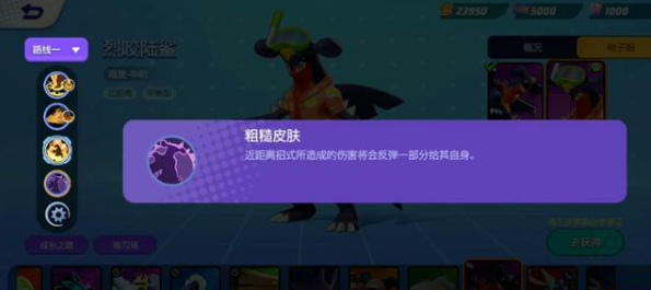 烈咬陆鲨特性:粗糙皮肤:近距离招式所造成的伤害将会反弹一部分给其自身。