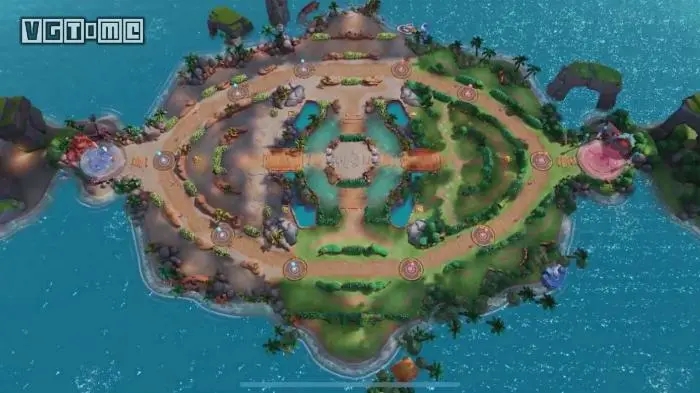 所有玩家选择完宝可梦后,就进入了类似于峡谷的地方,出生地和泉水差不多,完全可以当成moba地图。在地图中,有草地和石墙,野外可有宝可梦坑洞,也有类似于防御塔的攻击点。
