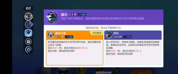 卡比兽一技能:撞击,用肚子进行攻击,造成范围伤害并在短期内降低对方速度。