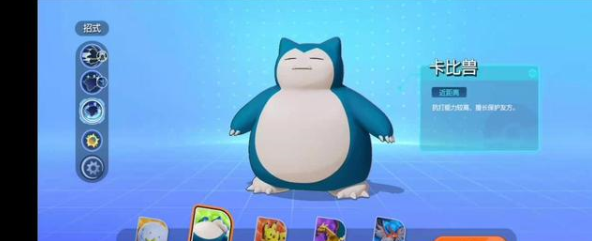 卡比兽三技能:也就是集结招式,能力上升,原地睡觉后打鼾,周期性造成伤害并回复自身体力,在睡觉期间翻身可造成伤害。