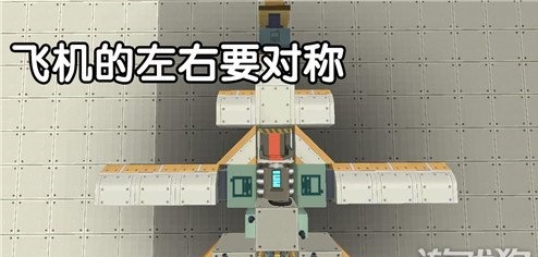 想要让飞机在飞行过程中达到平衡前进,首先我们要注意的是,飞机的左右两边要对称(飞机的两侧方块数量和摆放位置相同):