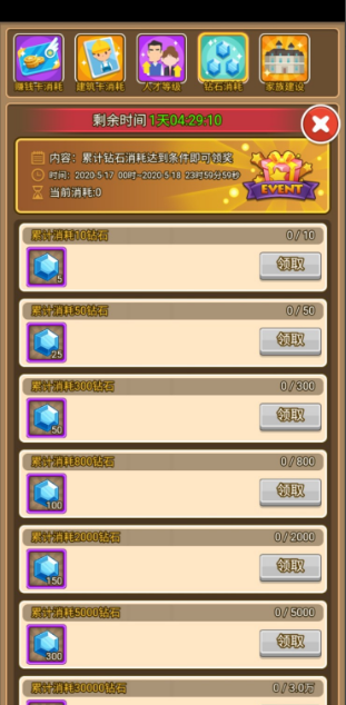 6.限时奖励里,消耗一定钻石,也有反还一部分钻石