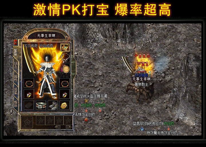 4、刷怪爆率加倍,随意爆神装,万人跨服团战,回味经典传奇。