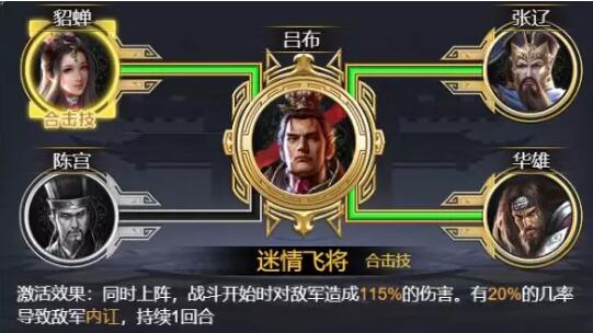 其次要介绍的就是我们的三国第一猛将-吕布。吕布作为三国第一猛将在游戏当中自然也是一样,拥有高达一百点的武力值,配合上技能打出来的伤害恐怕关羽都要掂量掂量。不过有利必有弊。吕布虽然武力值很非常但是智力值缺比较的低,这也是正式我们给他配备了貂蝉这位武将的原因。貂蝉拥有100点封顶的魅力值,在于吕布同事上阵的时候,无视敌方防御提升15%,在配上吕布的高输出简直是太恐怖了!