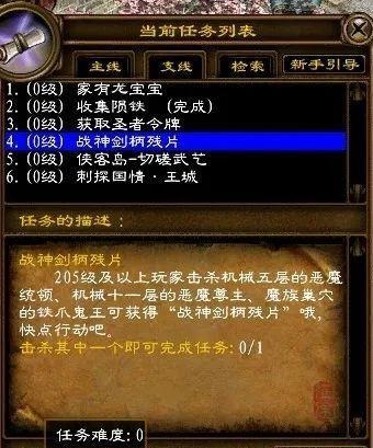 玩家只需在“神匠”处接取相应的考验任务获得战神剑柄残片或用10个“莫邪令”兑换“战神”称号。