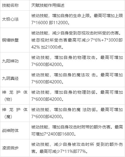 三、天赋技能作用简介:
