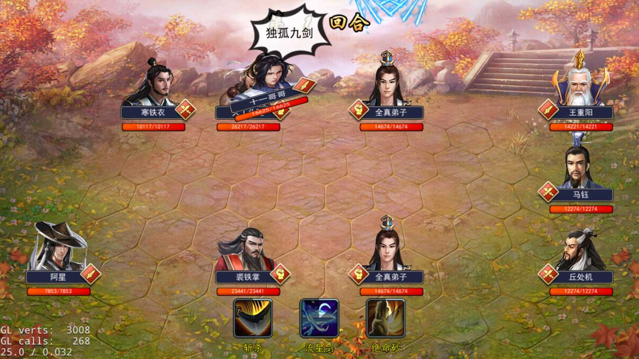 点星山:七星桩只上主角和刀,刀主就单上,三回合跳过可以节约时间。