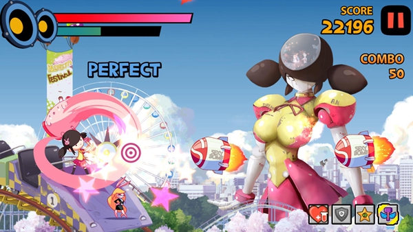 “画面很可爱!把音游和街机结合在一起了,妖怪设计了一个怪蜀黍,跑到玩家扮演的小萝莉面前捣乱,我们的任务就是要用大锤KO他们(如果Miss的话立,怪蜀黍会秒变暴露狂魔!)音乐和判定都还不错,和一般优美风格的音游有点不同。虽然可能玩久了会有点单调,不过最近没怎么玩到好的音乐节奏类的游戏,感觉这个蛮特别的~”——玩家 红小菱
