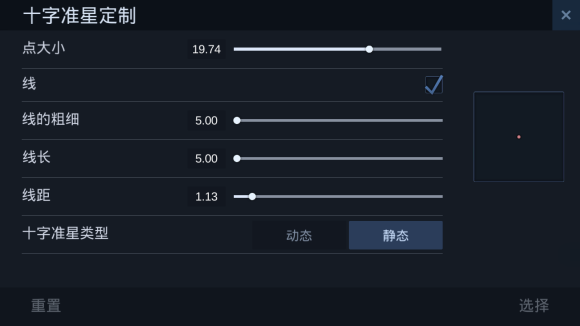 (下面是本人的红点瞄准镜配置;经验丰富的玩家可以使用静态准星,静态一说是不容易分散注意力)