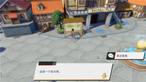 在小镇广场中心,有一个原著中曾经出现过的鲸鱼喷泉,而当玩家靠近后就会出现“放大镜”,这时会弹出一个对话框,并示意玩家“靠近看看”。
