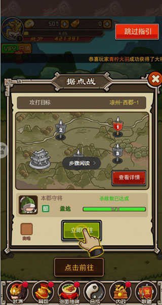 5、而在上阵之后我们就需要用我们的英雄去获取资源,这样才能培养他们,使他们不断变强,而据点战是主要方式之一。
