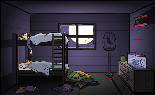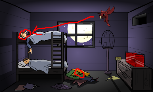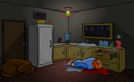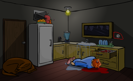 先点榨汁机,把橘子放进去,再点下榨汁机,然后趁老奶收拾榨汁机的时候,赶紧点洗碗台,再点右边第一栏抽屉,接着点刀,这样老奶就死了。