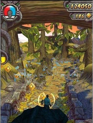 3.同时玩家还可以依靠重力感应,左右倾斜玩家的手机让你的人物在前进的路上左右移动。除了坠崖或触碰到陷阱会让游戏失败外,被地上的树根绊倒或撞上障碍摔倒也会让玩家被后方追兵干掉。