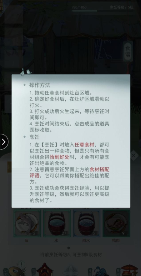 目前食物内有1-4级食谱,有了食谱,保底是极品质,并有概率出绝品、神品菜品,绝品、神品的食物有额外的加成,而且把神品卖给施涉秋会有很多钱,食谱不对就会歪出别的东西或是品质不高。