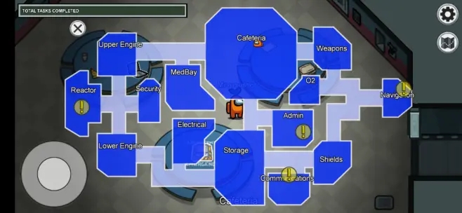 这款游戏之所以如此优秀,功臣之一是默认地图「宇宙飞船 Skeld」。该地图巧妙的环状布局结合了窄道和开放区域,也有足够的空间供冒充者实现隐秘的转移,船员们稍有不注意就会让冒充者逃过自己的视线。