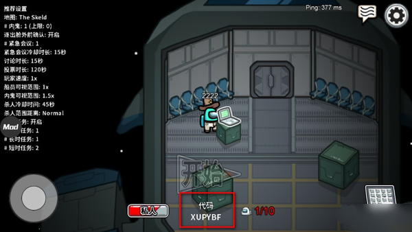 4、进入房间后我们可以看到下方有一个代码,也就是你创建的房间的密码;