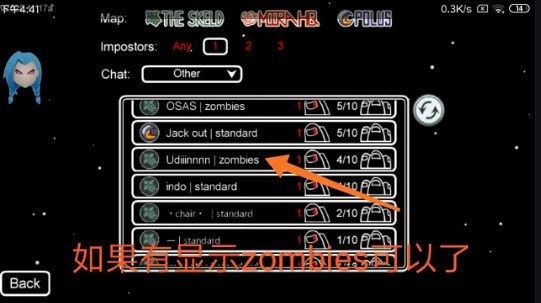 首先确保手机已安装”在我们之间”这款游戏,再打开此软件点击"PLAY",会跳转到游戏中在线.上中选择"Zombies"即可。