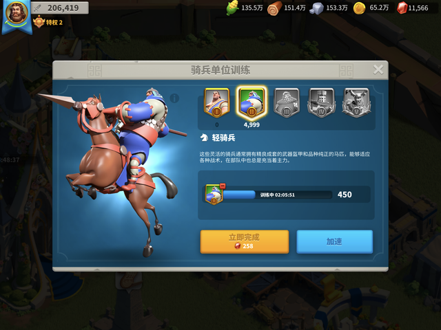 选德国还有一个好处就是5%的部队训练速度对四个兵营都有加成,在《万国觉醒》里部队的数量也关系到在野外采集时能携带的最大资源量。反正无脑产兵就对了,因为前期资源也花不完,唯一的问题就是需要花不少时间去累积军队。当然了,和建造加速一样,《万国觉醒》里训练加速同样会有非常丰富的资源,因此不要吝啬无脑加速就行了,不过可以重点倾向于骑兵单位的加速,这样尽快组成一支骑兵部队作为自己的主力军。