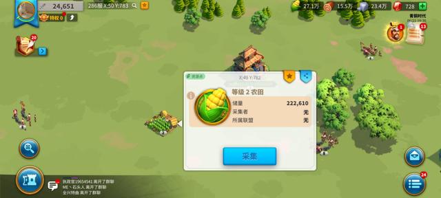 玩家除了主线任务外,还可以获取周边的资源。在游戏地图中有很多的资源地方,比如农田、石矿床、伐木场等,玩家可以派自己的部队小兵前往开采。