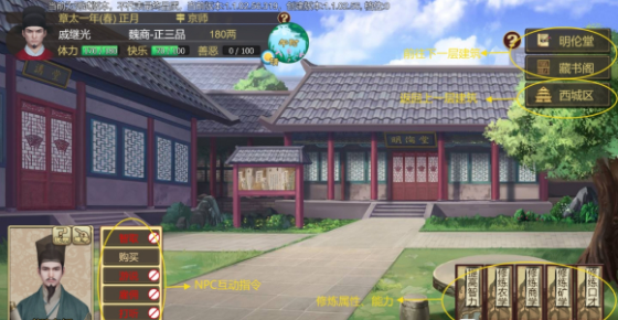 人物属性会直接影响我们在生活、战斗、生产、贸易中的方方面面,这些能力数值可以通过游戏内的设施锻炼提升。前往不同的设施,点击右下角的可选事件,提升属性是需要花费回合数和体力的哟~具体提升哪方面属性可以参阅问号内的详细介绍~这里就不多赘述了。