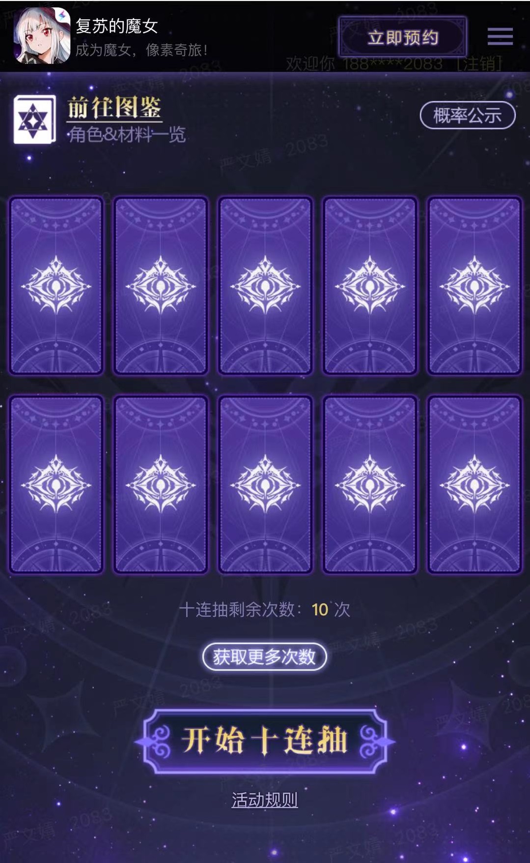 具体规则:各位魔女大人进入活动页面,每天登录即可免费获得3次十连抽的机会,直接在页面进行十连抽即可。