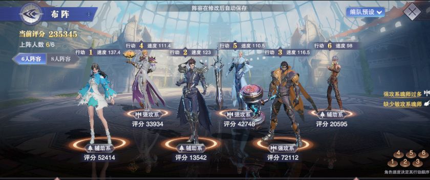 此阵容适合追求一回合速通的魂师,持续战斗不推荐本阵容。