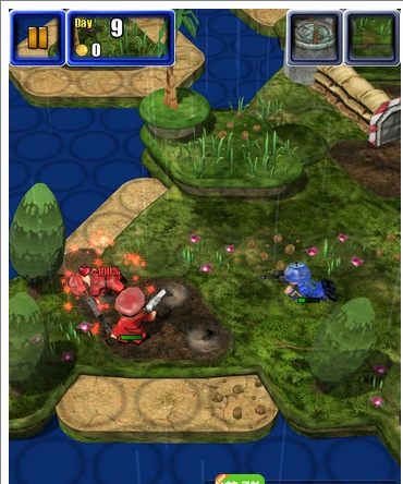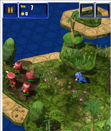 延续了前作的卡通化3D风格的它,在画质方面有所加强,整体暗色调的场景中,色彩相当饱满,给人一种非常舒适的感官体验,采用俯视的视角模式,我们能一眼看清整体布局,周边花花草草丰富的绿化,像似一个皇室园林,卡哇伊的卡通士兵,头戴钢盔却掩盖不住他幽默、滑稽的气质。