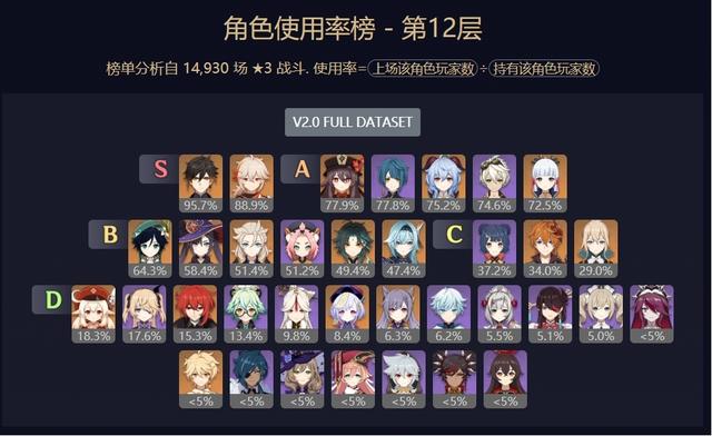 以最考验玩家角色练度的12层为例,除了“客串”的愚人众债务处理人和雷萤术士,其余的怪全部换成了又肉又敏捷的武士浪人、魔偶剑鬼及遗迹机兵。另外,深境12层往往没有特殊地脉异常,如今却增加了充能潮汐效果,令一些玩家“水土不服”。这些因素令聚怪专精的温迪掉到了64%,“璃月三C”之一的魈的使用率也大幅下滑,而稻妻的万叶和神里反倒登上神坛。
