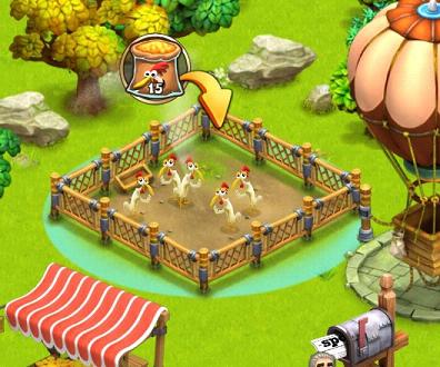 同样的方法点击“鸡饲料”来滑动洒向小鸡们,喂养它们。