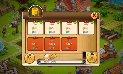 首先,我们点击动物栏,可以看到鸡蛋已经可以收货了~,一样使用滑动的方式点击篮子来收获鸡蛋,收获之后,鸡们就都处于“饥饿状态”了,你看它们一个个好像很颓的样子多惨呀,所以赶快喂养它们吧