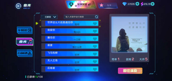 6、多种音乐元素打造的界面,给玩家身临其境的挑战体验。