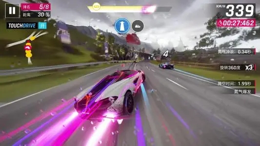 充满氮气棒,释放极致氮气脉冲,获得极致加速,让您的爱车冲破音障!随时双击刹车完成360°机动,以超酷的风格打败你的多人游戏或AI对手,享受你身后的烂摊子!