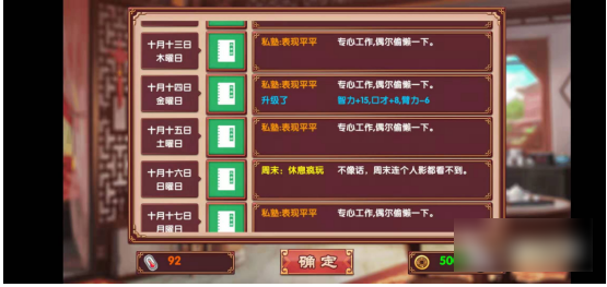 2、私塾:该工作需要文学社等级大于15后,才能触发剧情开启新工作。一次可以提供15智力和8点口才,但是会略微降低臂力(升级一次降低6点)。工作一次可以获得15点金钱,略高于文学社。