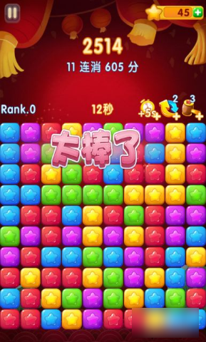 6、星星是无穷无尽的,只要消除过后,就会自动添加新的星星出现,需要不断的做出快速的判断,从而消除连接在一起的星星,让自己获得更多的分数,从而获得奖励。