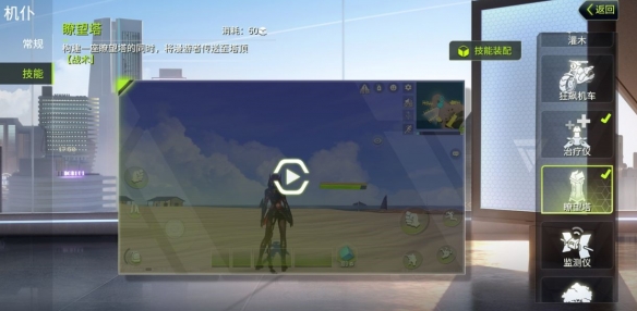 效果在原地召唤瞭望塔并让角色强制位移到塔上,是一个很强的位移改变地形技能。有效提供掩体,在关键时刻也能救命,灵活使用还能克制堡垒。
