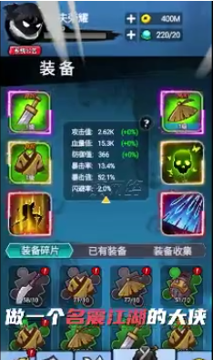 不得不提的是本作的战斗场景,用Q版3D形象取代了早已让大家视觉疲劳的2D卡牌表现,俯视视角及屏幕晃动带来的打击感,让本以为镜头又会是你一下我一下的小编我大呼nice!!游戏还实现了武器装备可视化,试想一下,看到自己心爱的大侠拿着屠龙刀,倚天剑闯荡江湖的样子,是不是已经让你热血沸腾了呢!