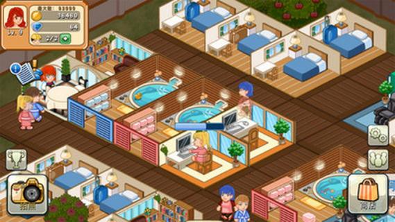 游戏操作跟其他模拟经营类游戏差不多,刚进入游戏也会有贴心的操作引导。NPC苏菲亚会带领玩家以详细的步骤操作和明确的箭头及文字说明,来了解游戏的操作方式,玩家一开始不知道该怎么做时,只要跟着教学任务慢慢从基础打造就可以了。玩家在游戏中只要点击屏幕相应的地方就会触发相应的功能。如果你点击游客或者房间上面的符号也会触发各种各样的事件,对度假村进行升级,扩大土地面积,置办房间装扮度假村,一切都十分简单明了。