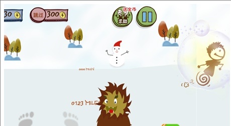 2.还剩下100多米时,会出现一个长相奇怪的怪物障碍,我们只要点击一下长毛怪,长毛怪就会移动到下方绊倒哥哥啦!