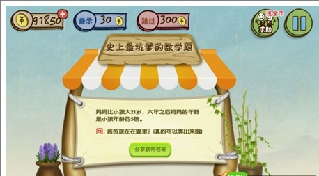 1.妈妈比小孩大21岁,六年之后妈妈的年龄是小孩年龄的5倍。问:爸爸现在在哪里?