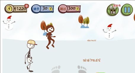 1.开局没什么好说的,用手指按在脚印上开始奔跑。一定要跟住弟弟的脚步,不能被拉开!