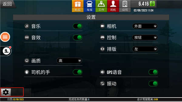 4、左侧的依次为车灯,雨刷,喇叭还有帮助。右侧依次为刹车,油门还有拉货还有卸货,点击题图你还可以开关你的小地图。