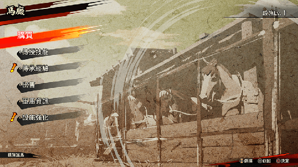 提升设施Lv。Lv提升后,军马的持有上限也会增加。有时也可获得能购买能力更高军马的机会。
